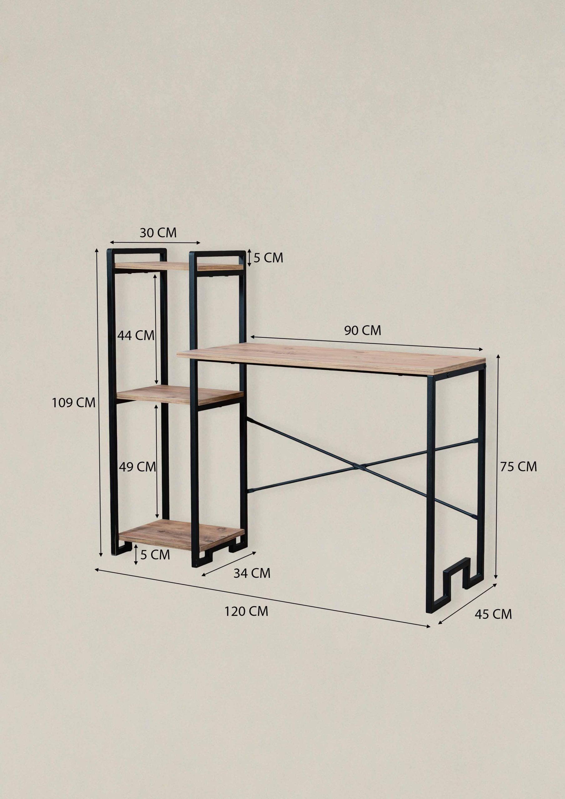 4 AHŞAP RAFLI METAL BİLGİSAYAR/LAPTOP MASASI